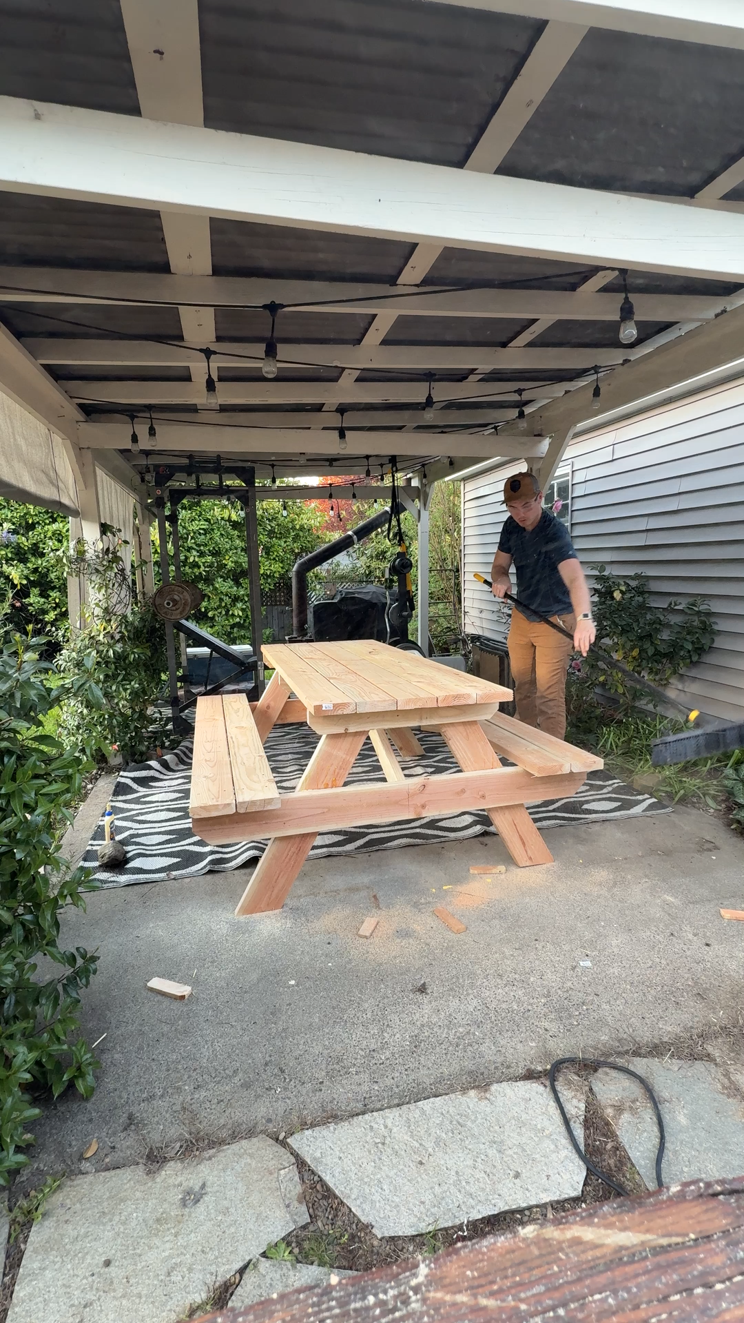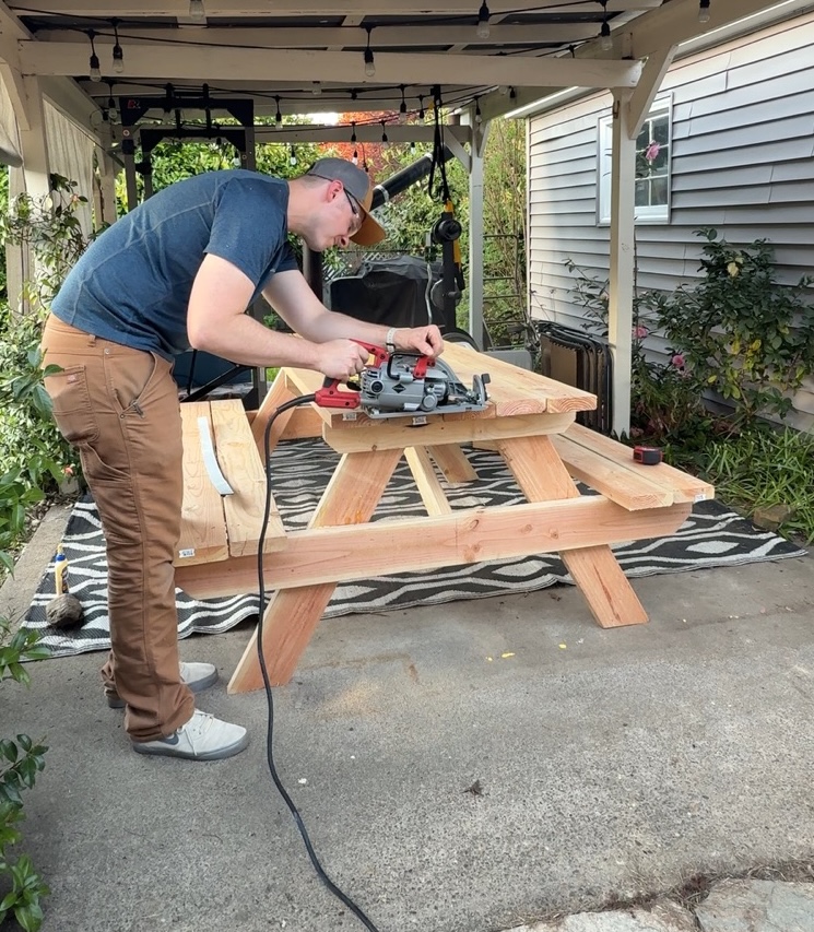 This is a traditional 6-foot picnic table build that is strong, affordable, and realistic to complete in a day if you prep your cuts first. It is a practical backyard project: solid enough for regular use, simple enough for a weekend builder, and locked together with exterior screws plus wood glue for long-term strength. This took me roughly 3 hours from start to finish and landed under $100 in materials, making it a perfect summer-prep project.